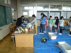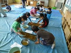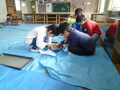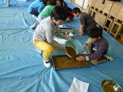 臨海自然教室2日目(29日)午後は、塩づくりを行いました。慣れない作業で悪戦苦闘しました。