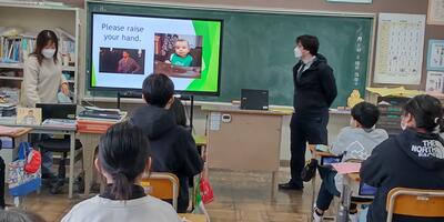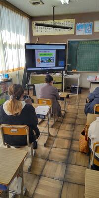 6年生は、北高根沢中学校ALTのマット先生とオンラインでの「All English」授業を行いました。3人ずつのグループに分かれて、これまで学習した英語を使って、マット先生と会話をしました。国際交流集会でマット先生とは、直接会話させていただきましたが、オンラインでの「All English」授業に、少し緊張気味な子どもたちでした。