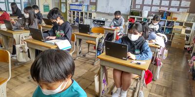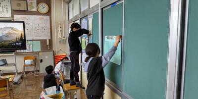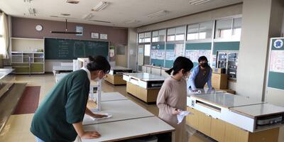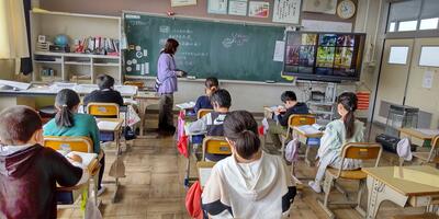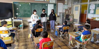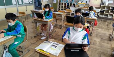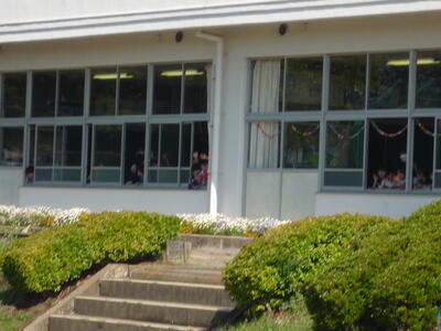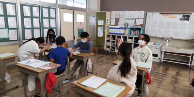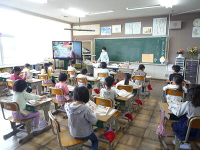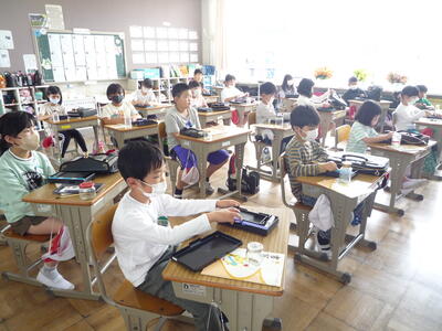 ゴールデンウイークが終わり、再び学校に子供たちの笑顔と元気な声が戻ってきました。1年生は、大きな声で校歌の練習をしています。2年生は、ひき算の仕組みを学習しています。3年生は、音符の種類や意味を覚えています。4年生は、音楽に合わせて体を動かしています。5年生は、動画を参考にお茶の入れ方を確認しています。6年生は、外国語の学習に取り組んでいます。雨がやみ、校庭の水たまりも小さくなってきました。昼休みは外で遊べそうです。