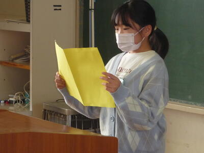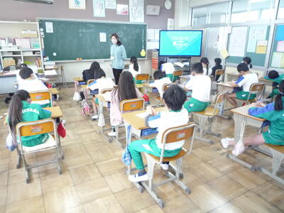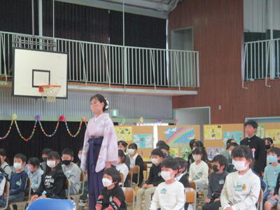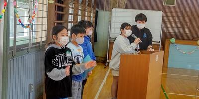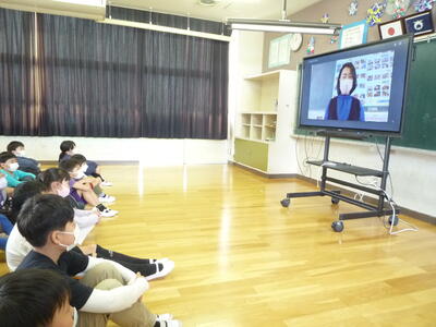 5校時、ふれあい室にて、2~6年生が参加し、「離任式」を行いました。加倉井千秋校長先生、今平千歳先生より、心温まるビデオメッセージをいただきました。子供たちは、画面越しに二人の先生方の話をしっかり聞き、教室に戻って、お礼の手紙を書きました。加倉井校長先生、今平先生、今までたいへんお世話になりました。お体に気を付け、ますます御活躍ください。