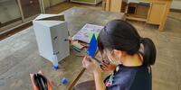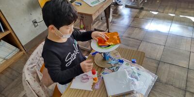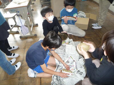 4年生は「図工」の授業です。自分だけの小物入れを作っています。