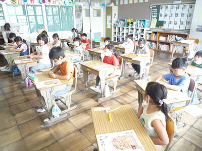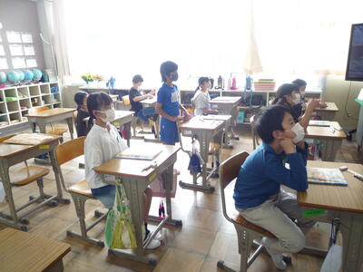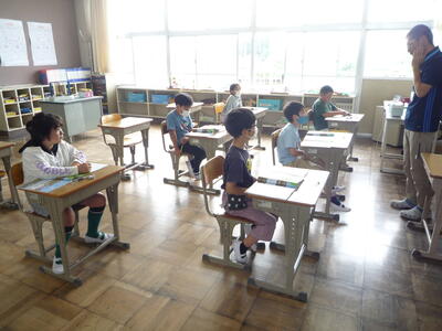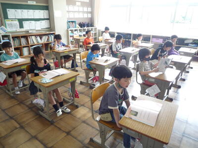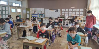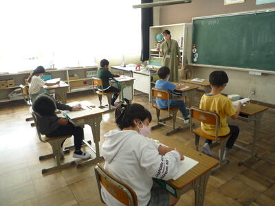 1,2年生は、来週23日(火)に予定されている遠足の確認をしました。2年生の班長さんを中心に活動しました。3年生は、書写の時間です。毛筆の学習に必要な道具をていねいに確認しました。4年生は、理科の授業です。天気や気温について、これから学習していきます。5,6年生は、校庭で体育の授業を行いました。陸上運動の「ハードル走」に取り組んでいます。