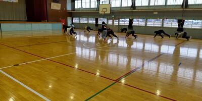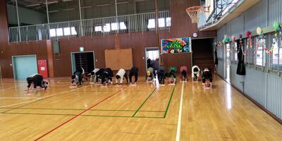 全員でマット運動です。