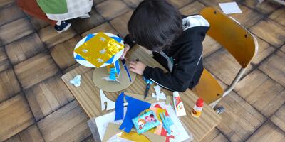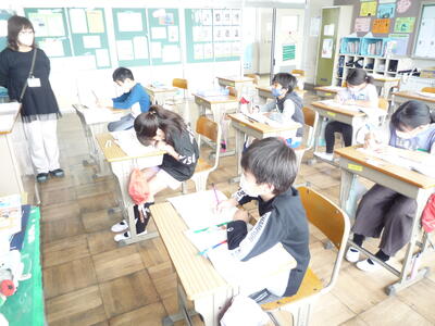3年生は「図工」の授業です。下絵を描いていますが、これから何に変身するのでしょうか。