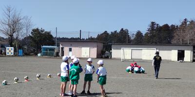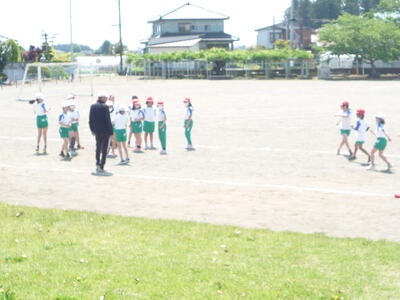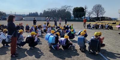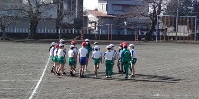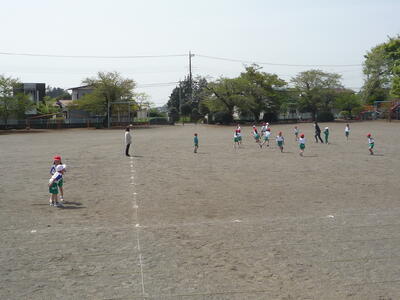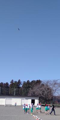 1年生は、「体育」の授業です。校庭で作戦会議をしている1年生の頭の上を、とんびが輪をかいて飛んでいました。
