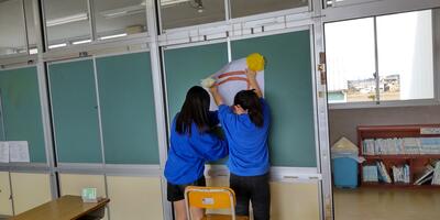 1年間お世話になった教室や靴箱の清掃をしました。