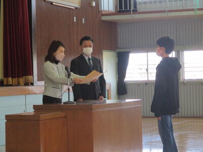 修了証書授与、児童代表発表では、どの子からも、この1年間で大きく成長した様子を感じることができました。明日から、春休みになりますが、また、4月には元気に会えることを楽しみにしています。