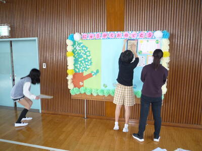 6校時に5,6年生が、入学式の準備を行いました。新しい仲間を迎えるために、みんなで協力し、温かい雰囲気を作ろうとがんばりました。17名の新入生の皆さん、保護者の皆様、明日の御入学おめでとうございます。