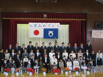 本日、17名の新入生が入学しました。町学校教育課長 加藤敦史様、本校学校運営協議会委員の皆様の御臨席を賜り、式を挙行することができました。ありがとうございました。一年生も、二年生から六年生も、しっかりとした態度で式に臨み、たいへん立派でした。一年生の皆さん、明日も元気に登校してくださいね。式後の集合写真を掲載しました。わかりにくいかもしれませんが、「おすましバージョン」と「ピースサインなど自由なポーズバージョン」です。