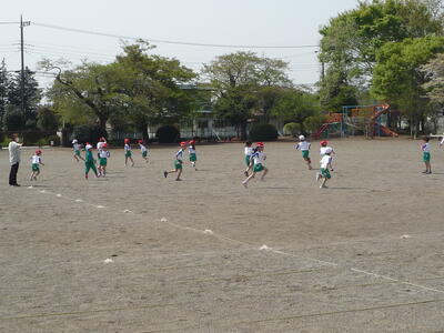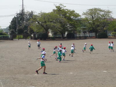 1年生の体育「鬼遊び」の様子です。12日(水)の入学式ではきちんとおすましの1年生でしたが、今日は青空のもと、みんな元気いっぱい走り回っていました。体をたくさん動かし、きっと給食も美味しく食べられることでしょう。コロナの影響で運動不足が問題視される昨今ですが、学校ではできる範囲で体力の向上を目標に教育活動を続けていきたいと考えています。来週より、全学年の子供たちの授業の様子をお伝えする予定です。