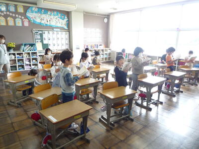 今年度も朝の活動における「読み聞かせ」がスタートしました。本日は、4名の読み聞かせボランティアの皆様をお迎えしました。全校生が、各教室で、ボランティアの皆様の話術や表情に魅了され、身を乗り出し、耳を傾けていました。一年間よろしくお願いいたします。