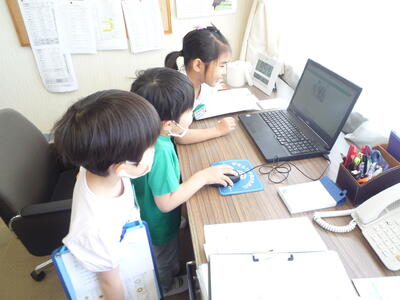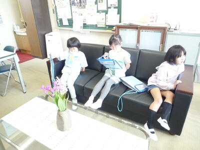 今日もさわやかな晴天です。校庭では、体育の授業が行われています。どの学年も運動の基本である「走る」領域の活動です。いろいろな走り方や50メートル走、リレーに取り組んでいます。また、1年生が「学校探検」を行いました。校舎内のいろいろな部屋を興味深く探検しました。校長室にも探検に来てくれました。ソファーに座ってお話したり、パソコンをのぞいてこのホームページを見たりしました。「一人でこの部屋にいて、さみしくないの?」と心配しくれる子もいました。そのやさしさ、ありがとうございます。