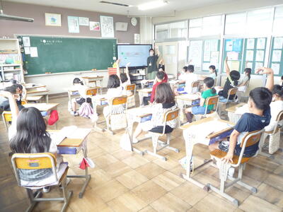 5年生は、「国語」の授業です。今日は学力向上推進リーダーの先生が来校し、担任とともに授業を行ってくださっています。