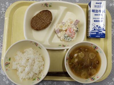 今日は、「ひじきサラダ」です。成長期である小学生の皆さんの身体は鉄とカルシウムをたくさん必要としています。ひじきはそのどちらの栄養素も多く含むため、すすんで食べてほしい食品です。