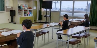 3年生は「音楽」の授業です。リコーダー演奏を聴き合っています。