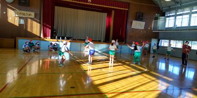 5年生6年生は、合同体育です。動きを高める運動に挑戦しています。