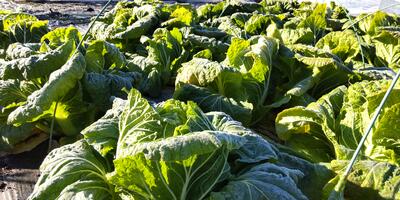 1年生は「生活科」の授業です。いよいよ白菜の収穫です。霜にあたると白菜の甘みと旨みが増すと言われています。今年度一番の冷え込みとなった今朝、白菜の霜が、朝日にあたってきらきらしていました。
