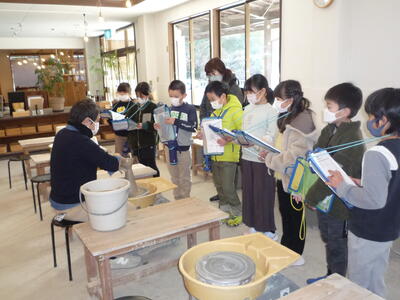 6年生は「理科」の授業です。化石を見つけているところのようです。
