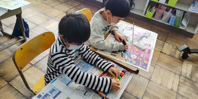 1年生は、「国語」の授業です。いよいよ自分の「ようびうた」を作るのですね。出来上がりが楽しみです。