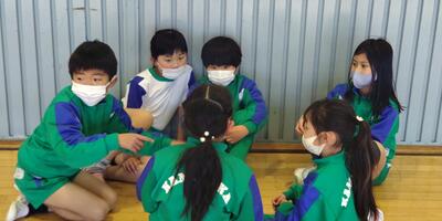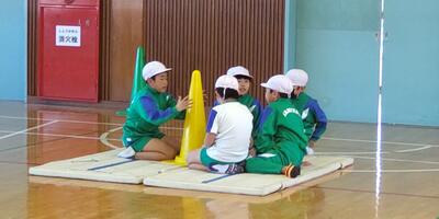 1年生は「体育」の授業です。友達の良かったところも発表しています。