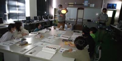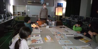 3年生は「社会」の授業です。本日は、高根沢町歴史民俗資料館の石橋先生にお越しいただき、明かりの移り変わりについて教えていただきました。燭台や行灯、ランプに実際に火をつけていただき、昔の人々の暮らしについて考えました。