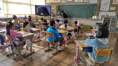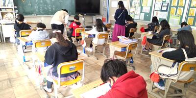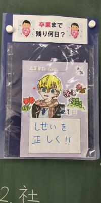 6年生は「国語」の授業です。教室の黒板に「卒業まであと何日」のカードが登場しました。