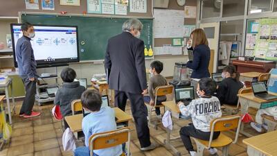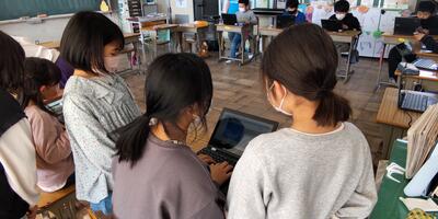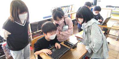 町非常勤講師の橋本慎一先生から、プログラミングの基礎を学びながら学習に取り組みました。将来の夢にゲームクリエイターをあげている子どもたちも多く、意欲的に学習に取り組んでいました。