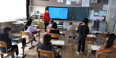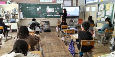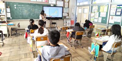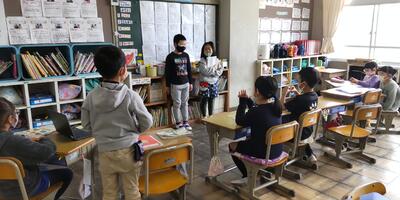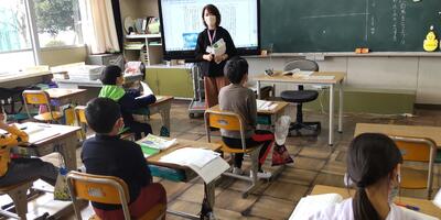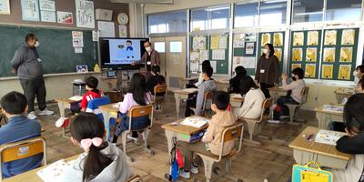 例年6年生を対象にして実施していた「国際交流集会」を、今年度は新型コロナウィルス感染症拡大のためのまん延防止措置の適用期間であることから、オンラインで行いました。