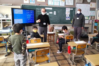 オールイングリッシュでの紹介に子どもたちは全く臆することなく、活動に参加していました。