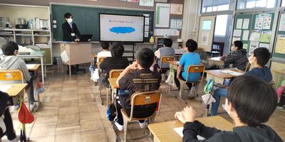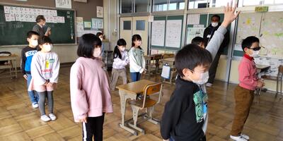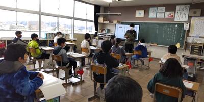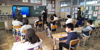 小中一貫教育の一環として、6年生対象に、北高根沢中学校英語担当の荒井先生とALTのマシュー先生においでいただき、英語の授業を行いました。まず、中学校での英語の授業を体験させていただきました。次に、自己紹介をしました。最初は、戸惑っていたようですが、すぐに授業に慣れ、笑顔あふれる楽しい活動となりました。直に中学校の先生の授業を受けることにより、雰囲気を体験でき、進学にあたっての不安感も解消された6年生です。