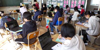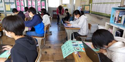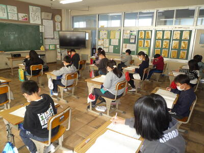 2年生、3年生は「国語」の授業です。「伝える」ことの難しさを今日も感じていますね。2年生は、事前に撮影した発表の仕方の動画から、伝えるためにもっと工夫できることはないかを考えています。3年生は、自分のお気に入りの作品について紹介するための文章を考えています。