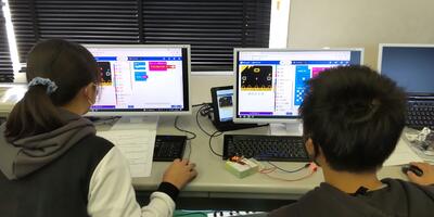 6年生の理科の授業で、コンピュータボードのセンサーを操作し、明かりをつけるという授業を行いました。