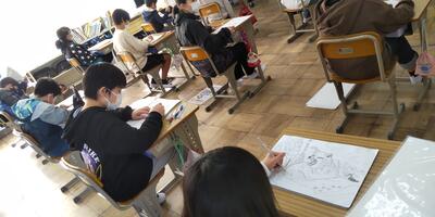 6年生は、「総合的な学習の時間」です。「夢マップ」は、キャリア教育の一環として、自分の将来に向けての今後の歩みを記したものです。完成した「夢マップ」は卒業式当日に、会場に掲示する予定です。