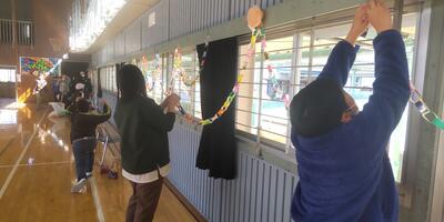 4年生、5年生の皆さんが、6年生への感謝の気持ちをこめて、会場準備を一生懸命にしてくださいました。