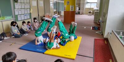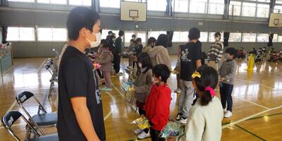 昔遊び・室内遊びクラブは、花いちもんめやかごめかごめの仕方を3年生に教えていました。