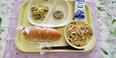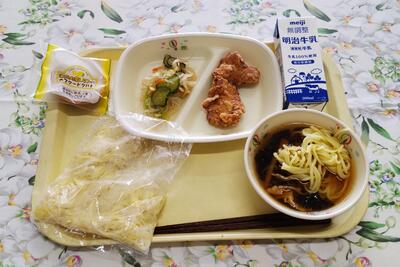 今日の給食は、阿久津小学校6年2組の皆さんの「リクエスト給食」です。ナムルや春巻きで野菜がたくさんとれますし、本当にみんなが大好きな物ばかりです。ありがとうございました。