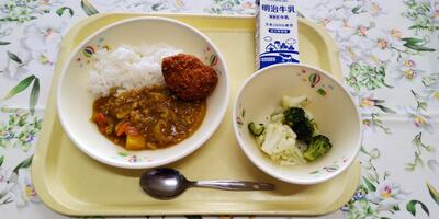 今日は「地産地消の日」の給食です。学校給食だよりでもご案内いただいていますが、25日(火)~28日(金)は地産地消の日として、県内産や町内産の食材が多く使用されています。生産地が分かることで安心して給食をいただけるのは有難いことです。