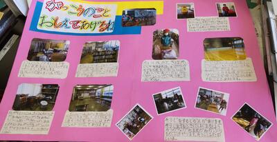 1年生は、「国語」の学習です。お店屋さんごっこをすることで、物を売るとき買うときの、尋ね方、応答の仕方を学習しています。