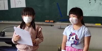 6年生は、小学校での一番の思い出を英語で伝えています。