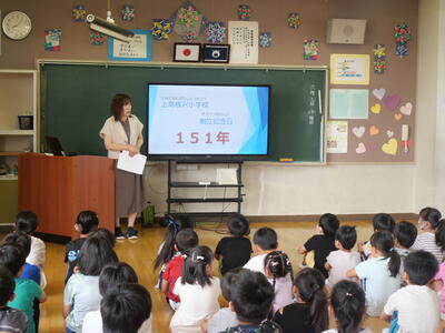 実際の創立記念日からは少し遅れてしまいましたが、今朝の全校朝会で、上高根沢小学校の歴史について話をしました。151年の間に、学校の名前が何度か変わったこと、校歌や校旗がつくられたこと、木造校舎から鉄筋コンクリートの校舎になったこと、服装なども変化したこと・・・。そして何といっても、歴史と伝統ある素晴らしい学校であることを話しました。ちょっと難しいかな・・・と心配しましたが、みんなとてもよく聞いていました。