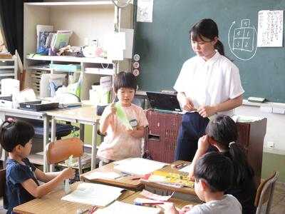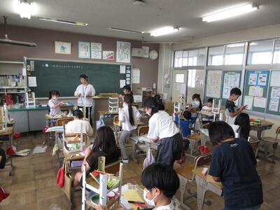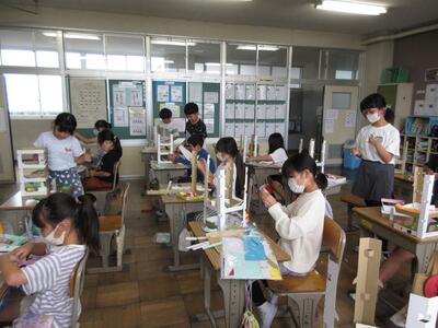 4年生は理科の学習をしていました。乾電池の向きを変えると、モーターが回る向きはどうなるのかを、実験をとおして調べました。みんな目を輝かせて活動していました。