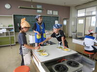 6年生の調理実習は大成功。「いろどりいため」と「スクランブルエッグ」が、彩りよくおいしく作れました。