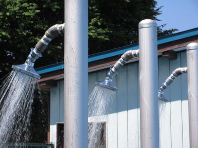 今日は2つの学年がプールに入りました。強い日差しが照り付ける中でも、シャワーの水は冷たかったようで、キャーっと声があがっていました。