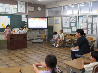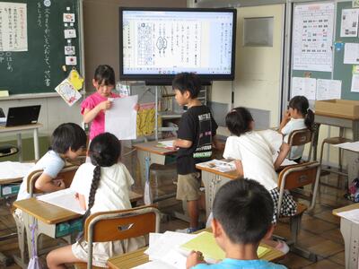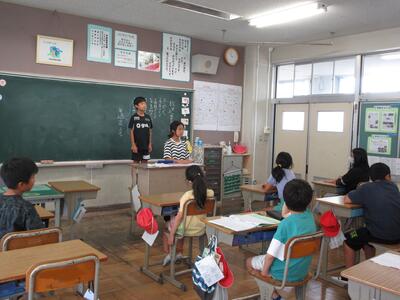 今日は、学力向上コーディネーター、町教育委員会指導主事、学力向上推進リーダーの先生方に来校いただき、2年生と4年生の授業研究会を行いました。