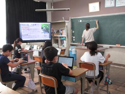 5年生は社会科、2年生は国語科の研究授業を行いました。