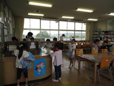 外で遊べないのが残念ですが、昼休みには図書室がにぎわっていました。