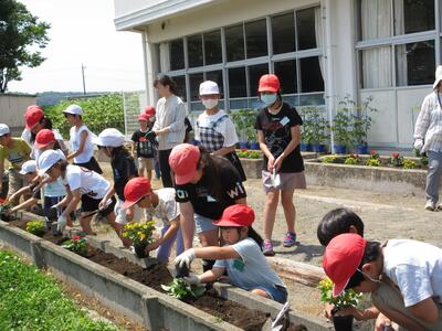 下級生に植え方を教えたり、苗が入っていたポットを進んで回収して片付けたり、自分にできる仕事に率先して取り組んだり・・・。上高根沢小学校の子どもたちのよさを垣間見ることができました。