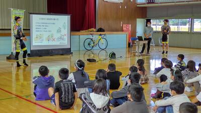 自転車の交通ルールについて理解し、周囲に気を配って安全な自転車の乗り方ができるようになることをねらいとして行いましたが、子どもたちは、講師の方々の話に真剣に耳を傾けていました。