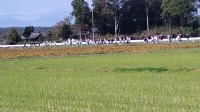 スポーツタイムの時間に、12月4日に行われる持久走大会のコース確認をしました。1年生2年生は遠足でしたので、3年生から6年生での確認です。原則、左側を走りますが一部右側を走るところもあります。危険個所を確認しました。
