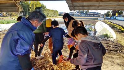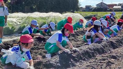 1・2年生が、「生活科」の時間にサツマ芋ほりを行いました。
